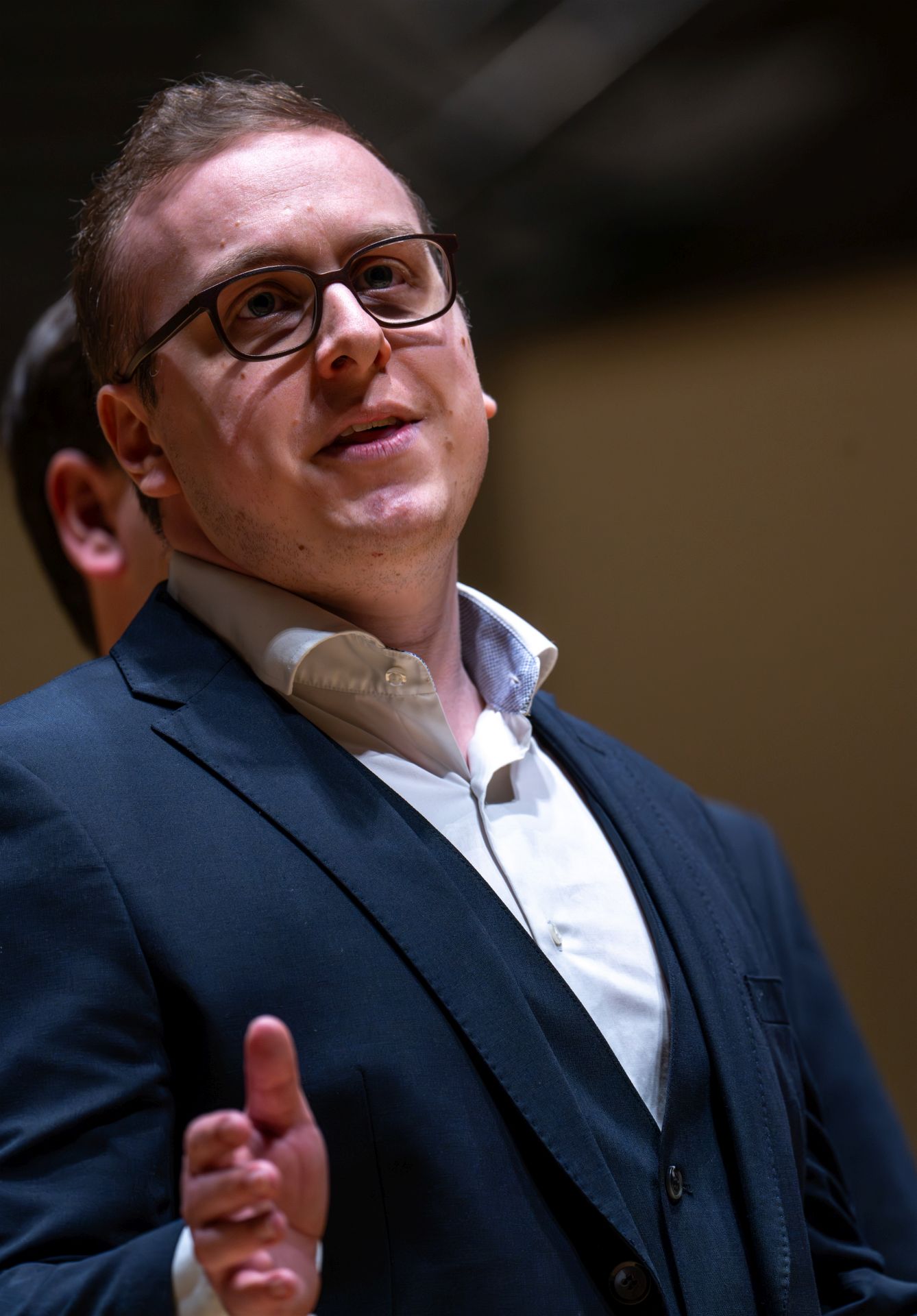 Robert Pohlers, tenor of amarcord since 2013, was a member of the Leipzig St Thomas Choir, where he appeared as a soloist at an early age and was honoured several times for his services to the choir. After graduating he studied singing at the Leipzig University of Music and Theatre “Felix Mendelssohn Bartholdy” under Prof. Roland Schubert until 2020. In the course of his concert career, which has already taken him to over 30 countries, Pohlers has worked with renowned ensembles and conductors, including the Gewandhausorchester Leipzig, the Munich Chamber Orchestra, the Friuli Giulia Venezia Orchestra, Georg Christoph Biller, Gotthold Schwarz, HK Gruber, Steven Sloan, as well as at important venues such as the Gewandhaus Leipzig, Konzerthaus Berlin, Teatro Colòn Buenos Aires, Royal Academy of Music London, Vienna Musikverein, Prinzregententheater Munich and others. In addition to appearances on the opera stage, the tenor is increasingly developing a broad song repertoire. Various CD, radio, TV and DVD productions document his musical activities both as part of an ensemble and as a soloist. His first solo CD with songs by Felix Mendelssohn Bartholdy was released in 2021. Since 2023, Pohlers has been the artistic director and conductor of the Leipzig chamber choir “Ensemble TonArt” and, together with amarcord, a lecturer in ensemble singing at the Leipzig University of Music.