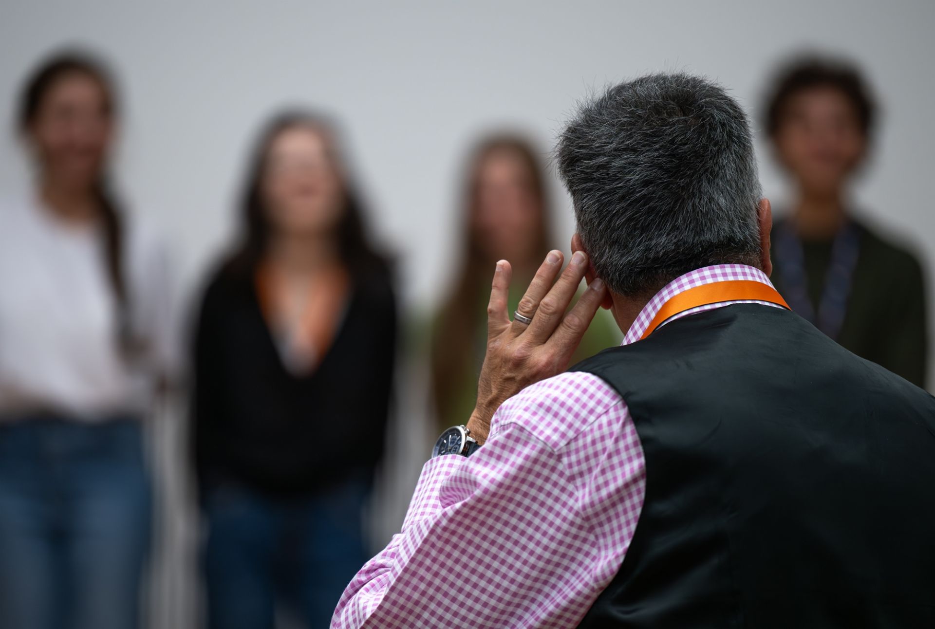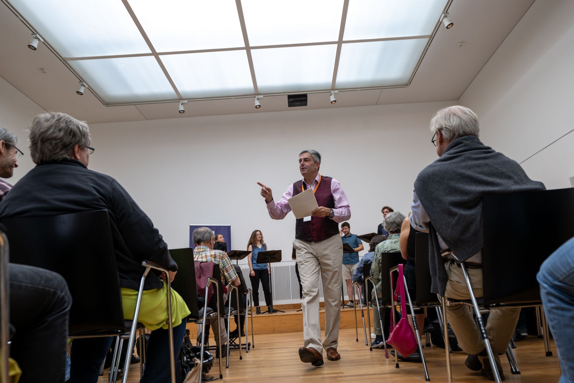 The former autodidact Juan M. V. Garcia is a qualified jazz singer and music teacher who has won all internationally renowned prizes with the pop-jazz vocal quartet Klangbezirk. As an arranger, Garcia works for Echo award winners such as the ensemble amarcord, Calmus, but also the BundesJugendJazzOrchester. His diverse experience as a vocal coach, musical director at various theatres, workshop leader, moderator, author, singer/instrumentalist and music producer has been followed since 2017 by a professorship in choral and ensemble conducting at the Hochschule für Musik »Franz Liszt« in Weimar.